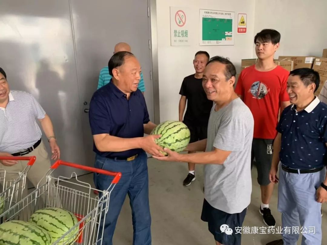 近段時間,淮南持續(xù)高溫,室外氣溫飆高近40度,那些高溫中堅守在一線的員工們牽動著醫(yī)院集團(tuán)領(lǐng)導(dǎo)們的心。7月30日上午,醫(yī)院集團(tuán)董事長江鴻方,集團(tuán)董事、康寶藥業(yè)董事長朱興林頂著烈日,來到康寶藥業(yè)倉儲部,為高溫下奮戰(zhàn)的一線員工“送清涼”。
