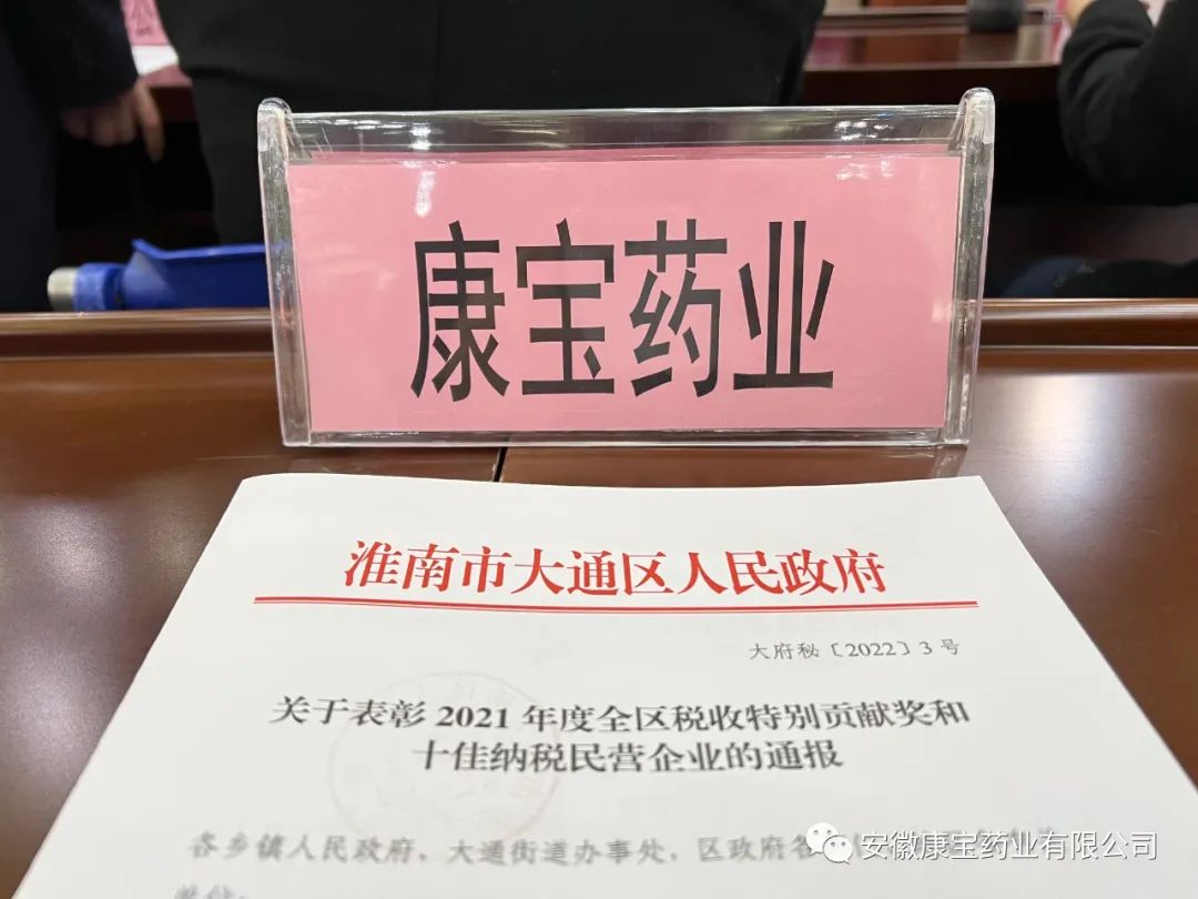 2月26日上午,大通區(qū)雙招雙引會(huì)議在區(qū)機(jī)關(guān)禮堂召開。會(huì)上,康寶藥業(yè)被大通區(qū)委、大通區(qū)政府授予“2021年度民營(yíng)企業(yè)納稅獎(jiǎng)”。康寶藥業(yè)已連續(xù)三年榮獲此獎(jiǎng)項(xiàng)。